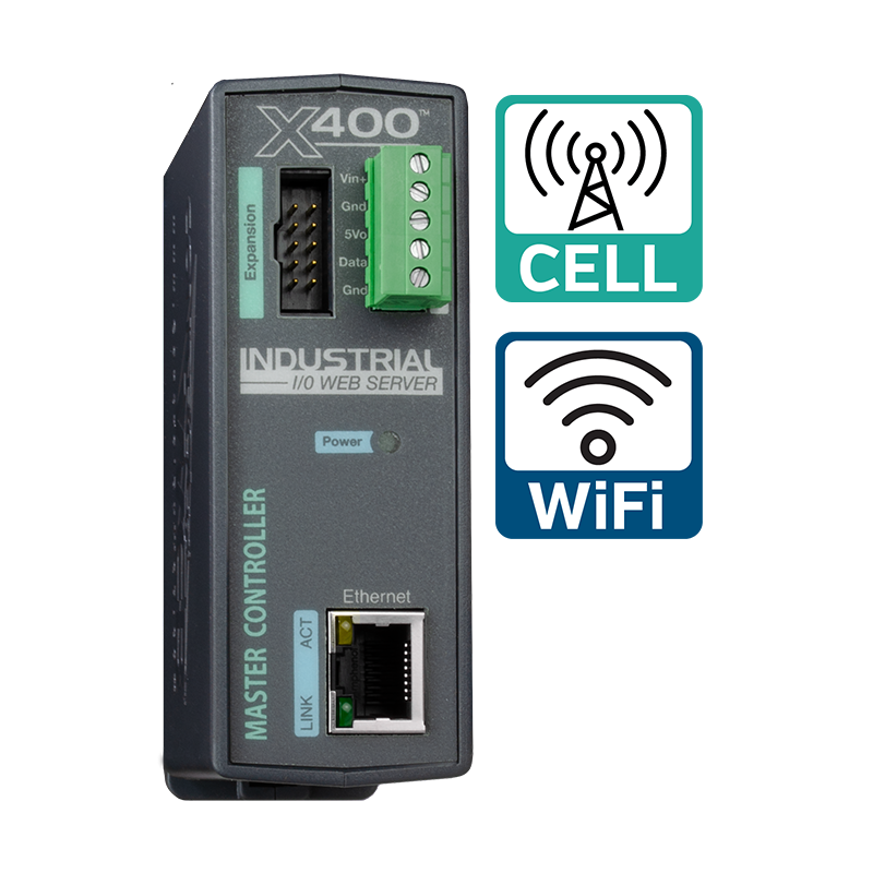 The X-400 is a great drop-in solution for flexible data capture and use. The modular design boosts I/O options with a variety of compatible expansion modules. Peer-to-peer networking with other ControlByWeb devices extends reach in physically challenging applications.